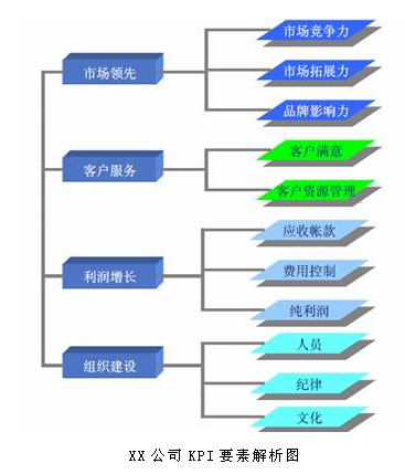關(guān)鍵成功要點(diǎn)分析,就是要尋找一個(gè)企業(yè)成功的關(guān)鍵要點(diǎn)是什么,并對(duì)于企業(yè)成功的關(guān)鍵要點(diǎn)進(jìn)行重點(diǎn)監(jiān)控。通過尋找企業(yè)成功的關(guān)鍵,層層分解從而選擇考核的KPI指標(biāo)。基本思想是通過分析企業(yè)獲得成功或取得市場領(lǐng)先地位的關(guān)鍵因素是什么,由此提煉出導(dǎo)致成功的關(guān)鍵業(yè)績模塊(又稱為“KPI維度”);再把業(yè)績模塊層層分解為關(guān)鍵要素,為了便于對(duì)這些要素進(jìn)行量化考核與分析,要把要素細(xì)分為各項(xiàng)指標(biāo),即KPI指標(biāo)。