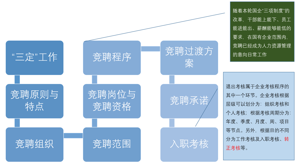 競聘不僅僅是一個選拔的過程,應該是上承企業(yè)的“三定” ,下接企業(yè)的績效評估的全過程。