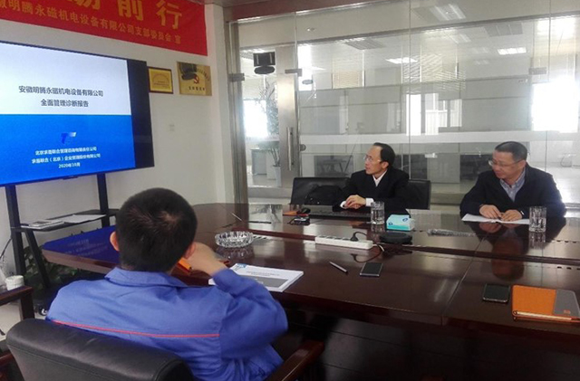 部分企業(yè)管理診斷咨詢現(xiàn)場見如下組圖,依次為:圖1為項目組(左一為求是咨詢董事長安林)進(jìn)駐安徽康明斯動力有限公司(安徽江淮汽車與美國康明斯各持股50%);圖2為項目組與中電鑫龍科技股份有限公司(深交所股票代碼:002298)法定代表人、總經(jīng)理汪宇(左二)訪談留影;圖3為求是咨詢董事長安林拜會安徽宏晟智能科技有限公司董事長萬賢龍(左一);圖4為項目組深度訪談安徽江南泵閥集團(tuán)有限公司董事長吳同茂(中)。
