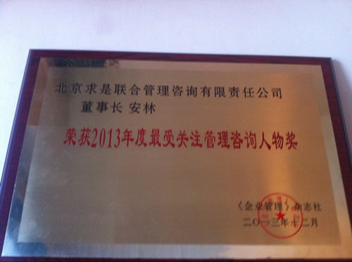 求是咨詢及公司董事長安林博士,因多年來在推進我國管理咨詢業(yè)發(fā)展所發(fā)揮的顯著作用,及在完善國資管理體制、提升企業(yè)管理水平所作出的突出貢獻,經(jīng)由《企業(yè)管理》雜志社及北大、清華、美國康奈爾大學等知名專家學者組成的專家委員會評定,分別榮獲“2013年度最具影響力管理咨詢機構(gòu)獎”和“2013年度最受關(guān)注管理咨詢?nèi)宋铼?rdquo;。我公司也是此次榮獲“雙料獎項”的唯一管理咨詢機構(gòu)。
