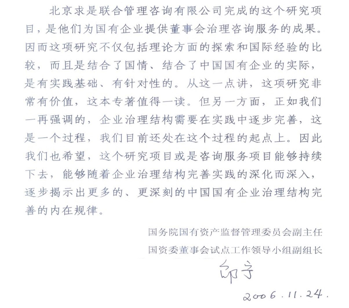 公司治理尤其是董事會(huì)建設(shè),作為現(xiàn)代企業(yè)制度的重要特征和核心內(nèi)容,更是國(guó)有企業(yè)深化改革必須加以規(guī)范、優(yōu)化和完善的重要任務(wù)。如今,國(guó)有企業(yè)開展公司治理、董事會(huì)建設(shè)已有又十多年頭,求是咨詢作為一路走來的見證者和參與者,既奔走在國(guó)企國(guó)企改革理論探索的一線,又奔波于國(guó)資國(guó)企改革管理實(shí)踐的前沿,做出了一己應(yīng)有的努力和貢獻(xiàn)。
